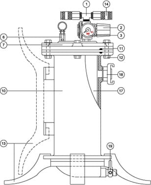 Airblast Helmet Air Filter (HAF) is designed to remove oil mist, water vapour and particulates down to 0.5 micron from breathing grade compressed air. The Airblast Helmet Air Filter meets OSHA regulation 1910.94 (6) (ii), requiring a trap and carbon filter be installed and regularly maintained to remove objectionable odours, as well as water, oil mist and other particulates.