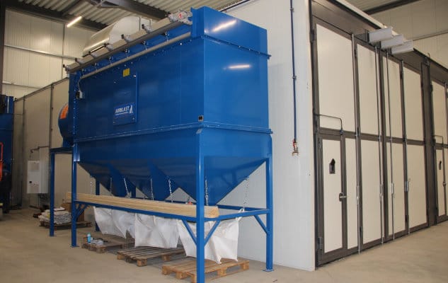 Bardzo ważne jest, aby w komorze śrutowniczej utrzymać dobrą widoczność. Do odpylania w komorze śrutowniczej firma Sybrandy opracowała specjalne wysokowydajne filtry, które tak skutecznie oczyszczają powietrze, że można je natychmiast zawrócić do komory. Nie prowadzi to do utraty ciepła ani energii. Stałe niskie ciśnienie w pomieszczeniu zapewnia, że pył nie wydostaje się z komory.