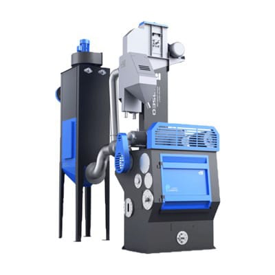 The TB32 can be used for surface cleaning, removing rust and surface intensification of various small and middle sized cast or forged work pieces. The addition of a continuous conveyor allows for increased production rates when used as part of a production line.